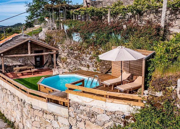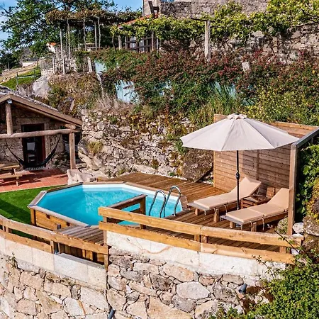 Chale Dos Penedos - Moncao, Minho Villa med 1 sovrum har en terrass med utsikt över gatan samt en utomhuspool. Villan med 1 badrum, som ligger 3 km från Castle Sistelo, erbjuder vandring och fiske.
